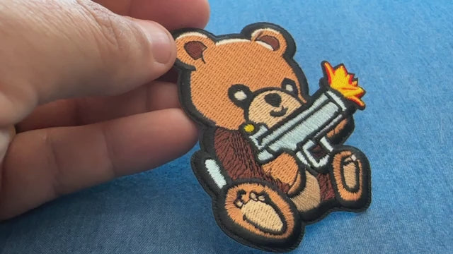 - Patch Style: Artwork only, featuring a teddy bear with a machine gun