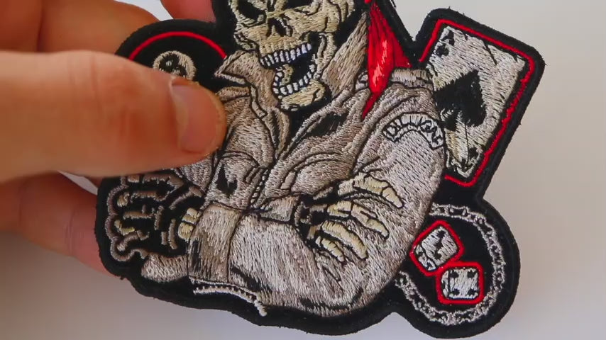 - Patch Style: Artwork featuring a combination of a biker skull, dice, the 8-ball, and the Ace of Spades—symbols of rebellion, luck, and the biker lifestyle.