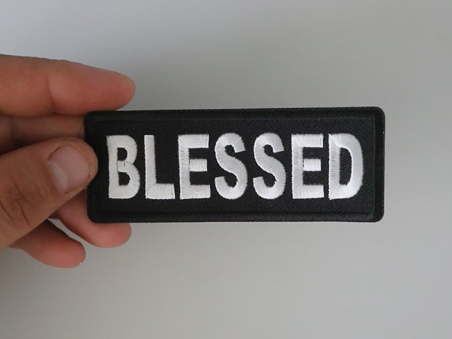 The Blessed Iron-on Christian Patch carries a powerful message of faith and blessing. Measuring 4 x 2 inches, this patch features the word "Blessed" in bold, clean embroidery with contrasting black and white colors.