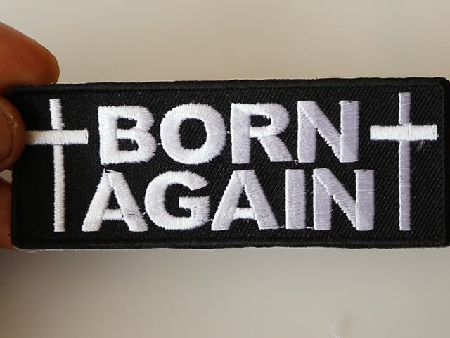 The Born Again Christian Patch is a powerful expression of faith, perfect for those who want to proclaim their rebirth in Christ. This patch features the words "Born Again" in bold white embroidery on a black background, making it a striking and meaningful addition to any garment. Whether you're wearing it on your jacket, vest, backpack, or hat, it serves as a reminder of spiritual renewal.