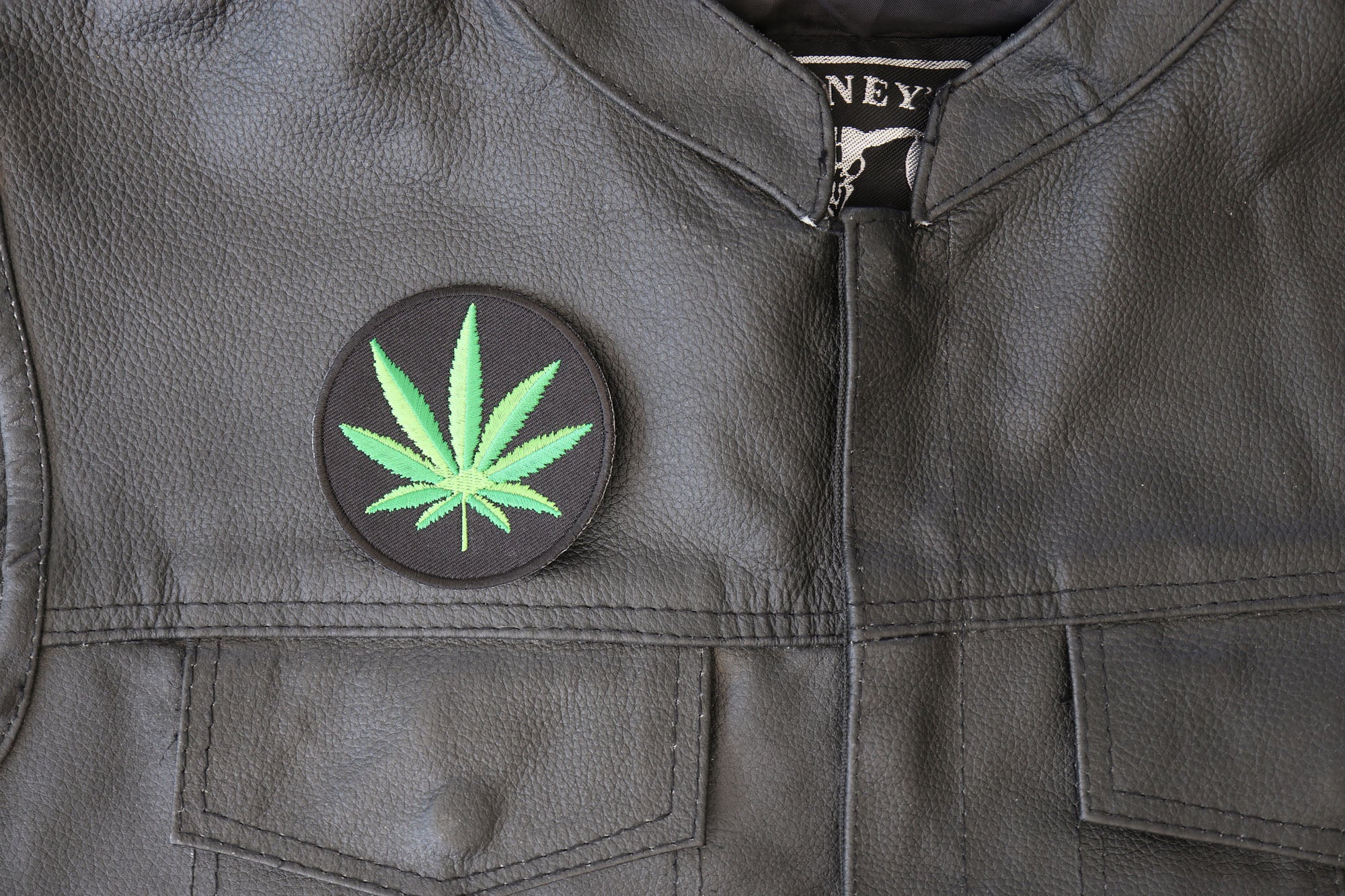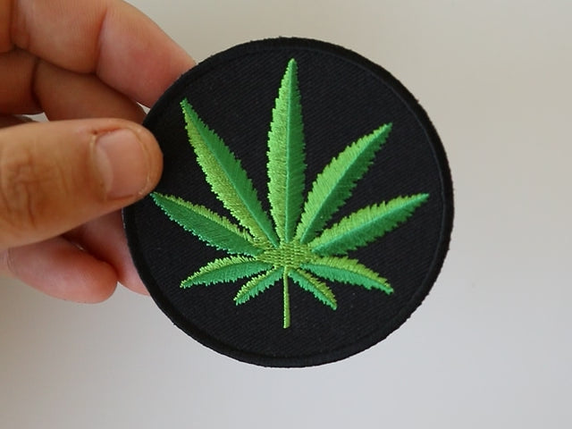 The Cannabis Leaf Novelty Iron-On Patch is a stylish and bold design, measuring 3x3 inches. The patch is embroidered in black and green, featuring a clean-cut embroidered border for easy sewing. Made from durable twill fabric, this patch can be easily applied to your garments with the included plastic iron-on backing.