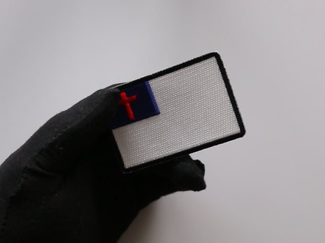 Patch Description: This 3x2 inch Christian Flag Patch with Black Borders is embroidered with the Christian flag colors: black, white, red, and blue. It features clean, laser-cut embroidered borders, and it is perfect for adding to clothing such as jackets, vests, backpacks, or hats. The patch is designed for easy application, either by sewing or ironing on, and it features a plastic iron-on backing for added convenience. Ideal for those expressing their faith, this patch is perfect for personalizing Christian-themed attire.