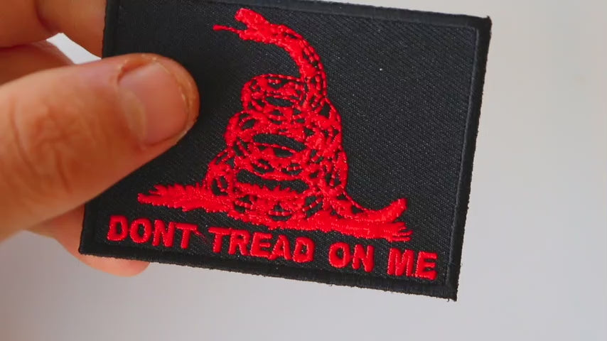 Embrace your rugged individuality with the Don't Tread on Me Gadsden Flag Patch in striking red over black. Measuring 3x2.25 inches, this patch boldly expresses your stance and makes a powerful statement.