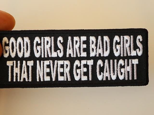 The "Good Girls Are Bad Girls That Never Get Caught" Patch is a fun and cheeky way to add a dash of personality to your gear. This patch measures 4 x 3 inches and features bold, white text on a black background, making it a standout accessory for jackets, bags, and hats. Perfect for those who love a little mischievous humor, this patch can be sewn or ironed on with ease.