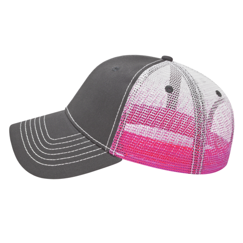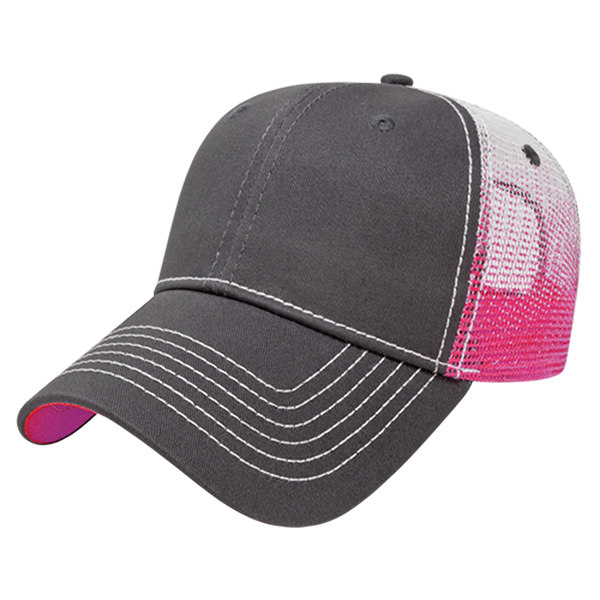 Product Description: The Gradient Fade Mesh Trucker Hat from Patch Tripper combines modern style with exceptional comfort. This hat features a unique gradient screen print design that transitions smoothly from one color to another, creating a visually striking effect that stands out.