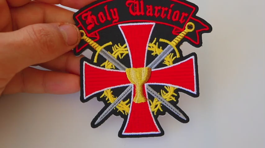 The Holy Warrior Patch is a striking design perfect for those who embody their faith and stand strong in their beliefs. Measuring 3 x 2 inches, this patch features bold embroidered text "Holy Warrior" in White and Red over a Black background, with intricate cross details to represent strength and devotion.