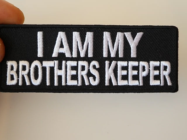 Stand in solidarity with the I Am My Brothers Keeper Patch, a powerful emblem of loyalty and community. This patch measures 4x1.5 inches and features a striking black and white color scheme, perfect for both iron-on and sew-on applications.