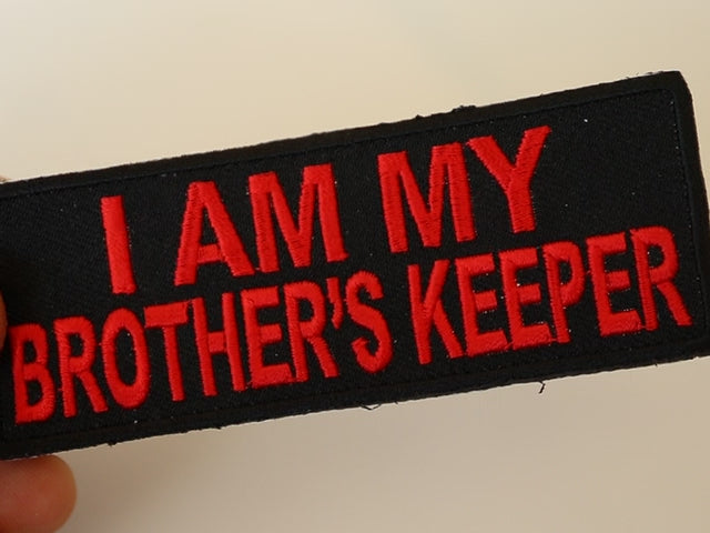 Celebrate loyalty and camaraderie with the I Am My Brother's Keeper Patch. This eye-catching patch features a bold black and red design, measuring 4 x 2 inches, making it a perfect accessory for jackets, vests, or bags.
