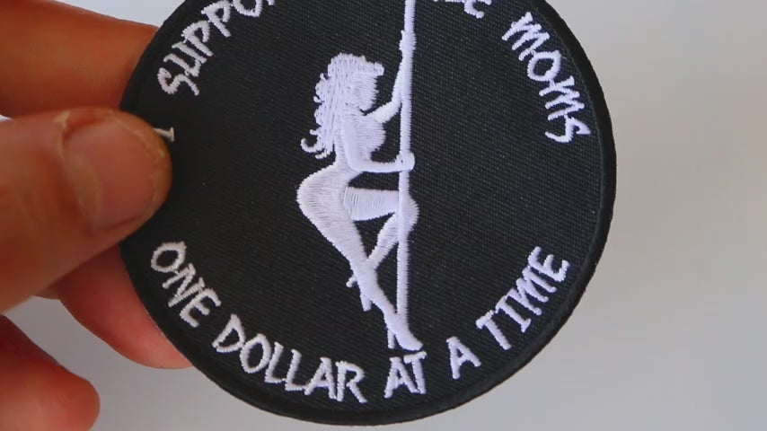 The "I Support Single Moms One Dollar at a Time" Naughty Iron-On Patch measures 3x3 inches and offers a playful, cheeky design embroidered in black and white. This patch is perfect for anyone looking to add a humorous touch to their jackets, vests, hats, or bags. It’s suitable for denim, leather (sew-on), backpacks, or casual wear, making it versatile for any style.