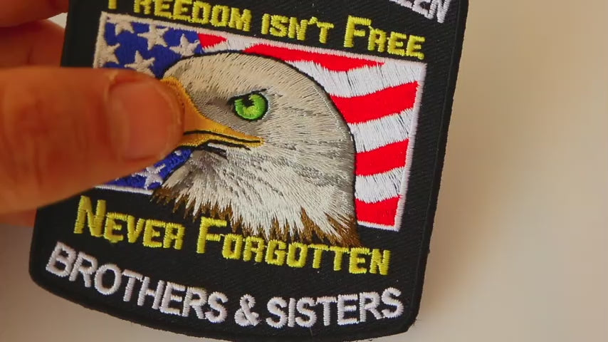 The In Memory of Our Fallen Military Brothers and Sisters Patch is a heartfelt tribute that measures 3.2 x 3.5 inches. Embroidered in a vibrant palette of black, red, white, blue, and yellow, this patch serves as a poignant reminder of the bravery and sacrifice of our military heroes.