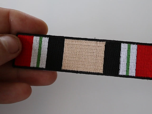 Wear your pride and support our veterans with the Iraq War Service Ribbon Patch. Get yours today and commemorate the courage and dedication of those who served!