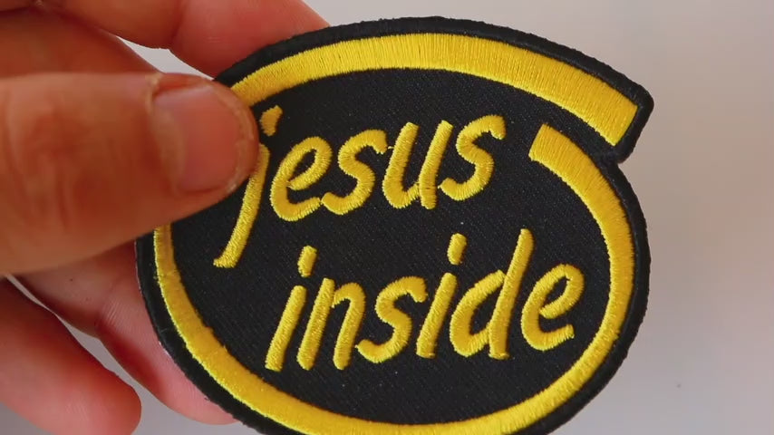 The Jesus Inside Christian Patch is a powerful reminder of the faith and spirit that reside within believers. With the words "Jesus Inside" prominently embroidered, this patch carries a simple but profound message. It features bold black and white text with a touch of red to make it stand out.