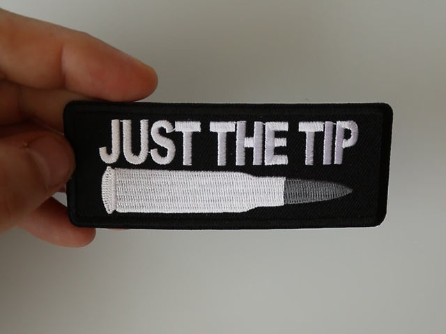 Elevate your wardrobe with the Just The Tip Bullet Patch. Perfect for jackets, bags, and more, this patch combines style with functionality. Order yours today and make your statement clear!