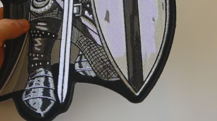 Knight Crusader Patch Description: The Knight Crusader Patch is a striking patch that features a bold, medieval-inspired design. Measuring 4x2 inches, this patch is embroidered in red, black, and white to evoke the powerful image of a crusader knight. The patch’s design includes a knight's helmet, cross, and a bold emblem to represent the strength and courage of the crusaders.