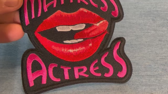 The Mattress Actress Iron-On Patch is a quirky and fun design, perfect for adding a playful twist to your wardrobe. This 3 x 3-inch patch features a humorous and bold "Mattress Actress" theme with bright and vibrant colors like pink, blue, and white, ensuring it stands out on any garment or accessory.