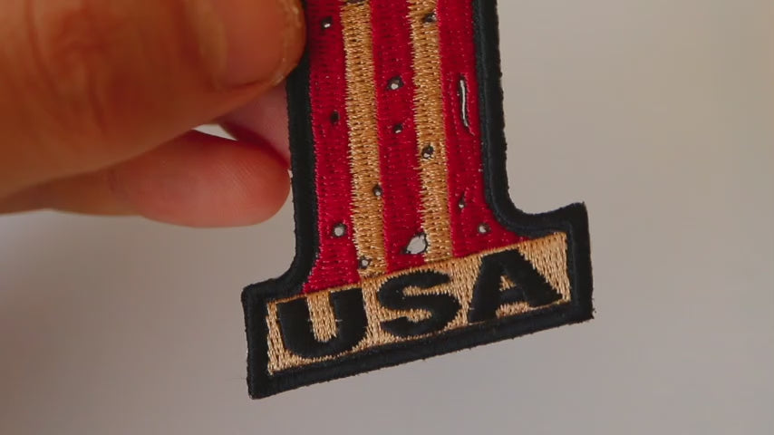 The Number 1 USA Vintage Flag and Stars Patch is a bold, patriotic embroidered patch measuring 2 x 3 inches. Featuring a vintage design, it showcases the "Number 1" slogan alongside the stars and stripes of the American flag, making it an ideal choice for those who take pride in their American heritage.