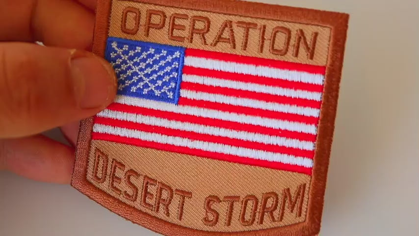 The Operation Desert Storm Patch is a heartfelt tribute to the brave men and women who served during this pivotal moment in military history. Measuring 3x3 inches, this embroidered patch features a prominent American flag at its center, symbolizing the courage and dedication of those who fought for freedom.