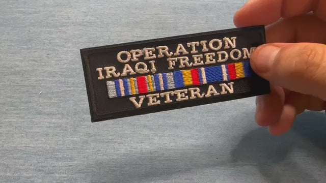 The Operation Iraqi Freedom Veteran Patch is a proud emblem designed for those who have served in the Iraq War. Measuring 4x2 inches, this distinguished patch features "Operation Iraqi Freedom" embroidered prominently above vibrant ribbon colors, with "Veteran" displayed beneath, symbolizing honor and sacrifice.