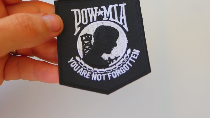 Show your support and honor the sacrifices of POWs and MIAs by wearing this meaningful patch. Ideal for military enthusiasts and anyone wishing to pay tribute to those who have served.