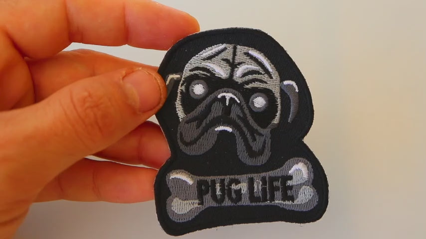 The Pug Life Funny Patch adds a touch of humor and style to your wardrobe. Measuring 3 x 3 inches, this embroidered patch features a playful "Pug Life" design in classic black and white tones, perfect for adding personality to jackets, vests, bags, hats, or denim.