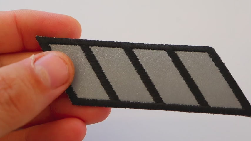The Reflective Stripes Patch is a sleek and functional design, measuring 4x1 inches. Featuring high-visibility reflective stripes, this patch is embroidered on durable reflective fabric that shines bright white when exposed to light. Ideal for enhancing visibility in low-light conditions, it can be used on a variety of items such as jackets, backpacks, uniforms, or gear for both practical and aesthetic purposes.