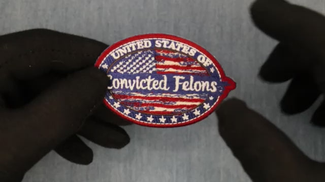 The United States of Convicted Felons Patch measures 3.5x2.5 inches and features a bold red, white, and blue color scheme. This patch is embroidered on durable Twill fabric and includes clean laser-cut embroidered borders for easy application. It is ideal for use on Leather Biker Jackets, Vests, Chaps, Shirts, Hats, and Denim Jeans.