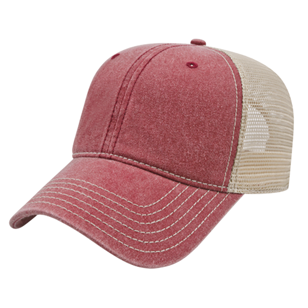 The Vintage Washed Pigment-Dyed Cap with Mesh Back combines classic design elements with modern comfort, offering a stylish and functional accessory that is both eye-catching and easy to wear.