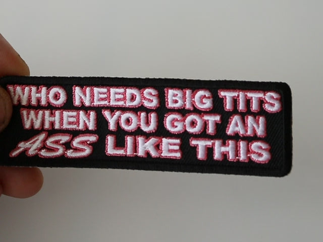 This patch makes a confident, humorous statement for those who want to stand out. Measuring 3 x 2.25 inches, the "Who Needs Big Tits When You Got An Ass Like This" patch is designed to add personality to any item, be it jackets, hats, bags, or vests. This text-only patch uses bold embroidery, perfect for those with a sense of humor and a love for self-expression.