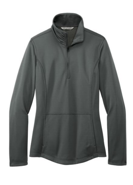 This 1/4-zip fleece is designed with a smooth face and brushed back, offering exceptional comfort while providing lightweight warmth. Ideal for active workplaces, it features a zip-through collar with ruching and reverse coil zipper for a refined look. The front pouch pocket adds practicality, and the tulip hem ensures a contemporary silhouette. Perfect for layering or wearing alone, this fleece combines functionality with a touch of style.